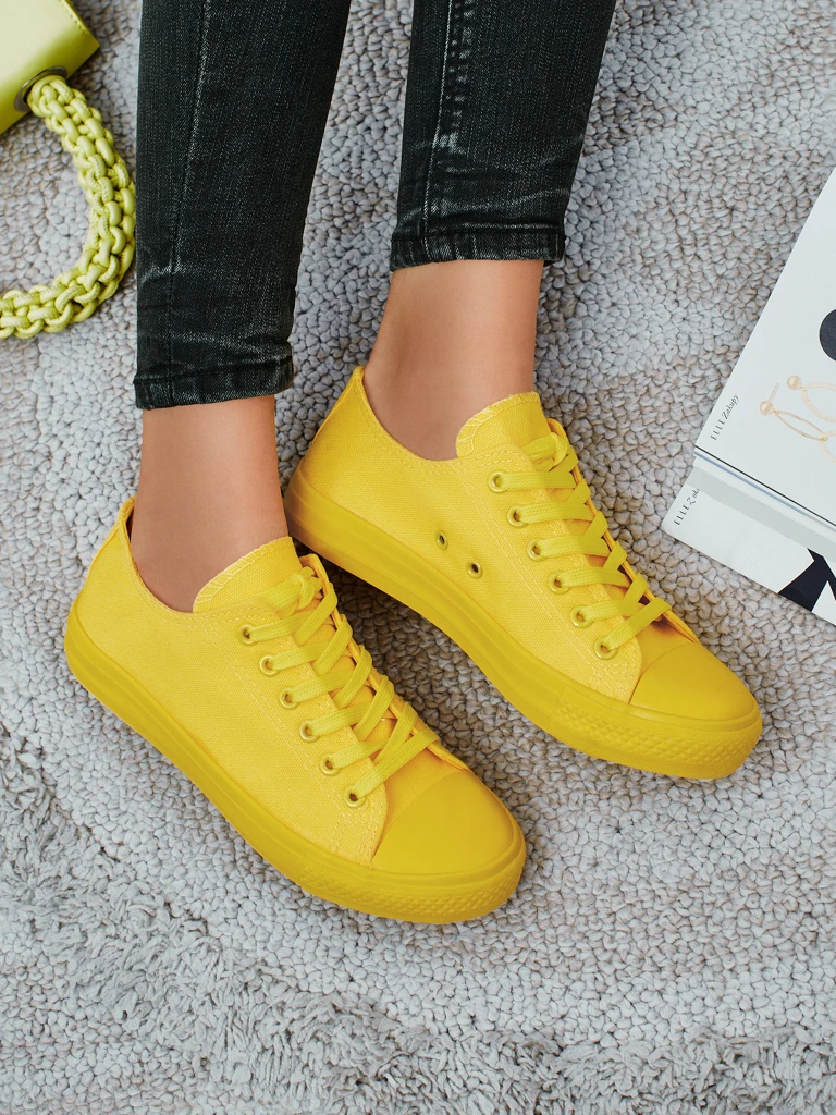 - Stylish women's sports sneakers made of fabric material. The model on a comfortable sole. The upper is laced. Great for creating casual outfits!