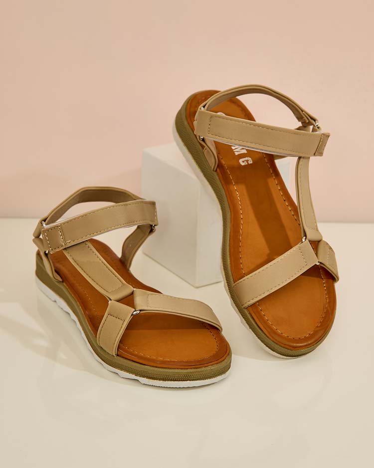 • Women's sandals on a flat decorative sole. They are made of pleasant fabric, the insole is eco leather. Footwear fastened with Velcro. Perfect for creating fashionable summer outfits!