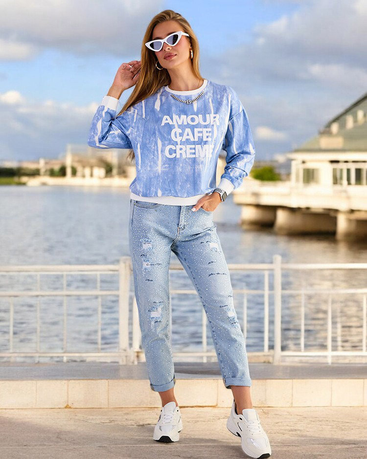• Add flair to your outfits with our thinner print embellished sweatshirt. Insertable over the head, with a round neckline and long sleeves. Perfect for every day when you want to feel casual yet stylish!