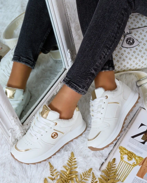 - Women's sporty sneakers on a thicker sole. Lace-up upper, made of ecological leather. Interior fully insulated with fur. Ideal for colder days!