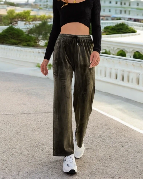 • Timeless women's sweatpants, made of soft material a'la velour. Model with a simple cut, has two slip pockets and elastic waistband and trousers. An ideal choice for everyday wear!