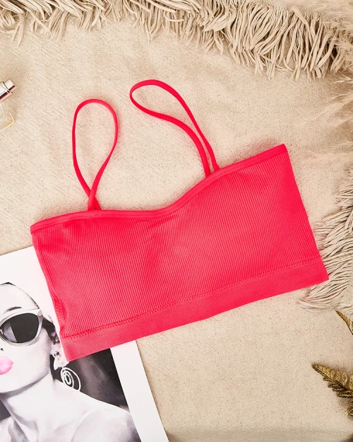 • Classic women's sports bra made of pleasant and elastic material. Model with thin, non-adjustable straps and with removable inserts, finished with elastic at the bottom. Perfect for everyday wear! NOTE: Measurement accuracy (+/-) 1 cm.