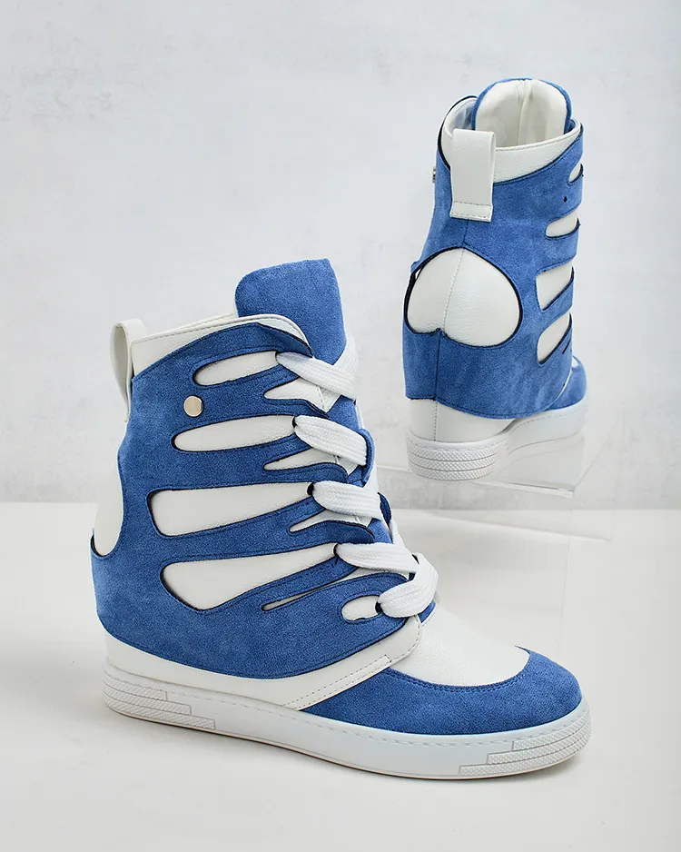 - Women's sporty boots on a heel, made of eco leather. Shoes tied with laces, inside fabric insole. SHOES BOOTS SNEAKERS PAMSTINSA