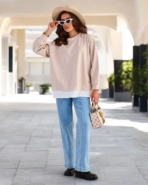 - Add flair to your outfits with our thinner sweatshirt. It features imitation protruding shirt. Insertable over the head, with a round neckline and long sleeves. Perfect for every day when you want to feel casual yet stylish!