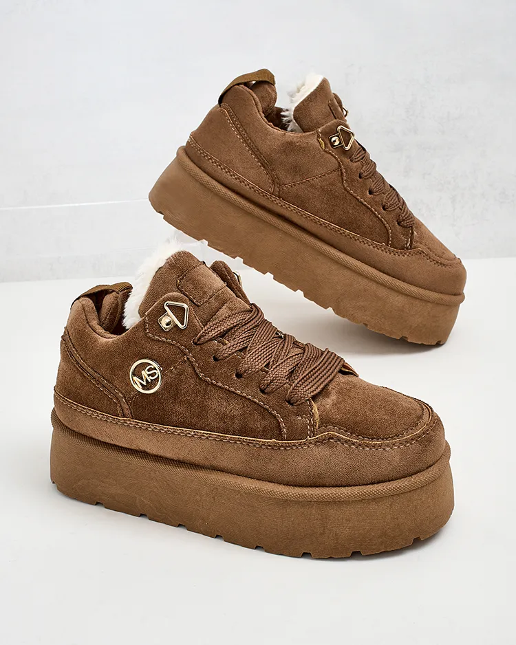 • Women's sporty platform sneakers. Lace-up upper, made of ecological leather. Interior fully insulated with fur. Perfect for sporty outfits!