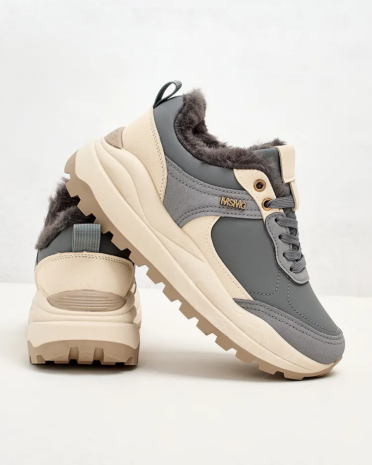 - Women's insulated sneaker sports shoes on a thicker sole. Lace-up upper made of eco leather. Soft fur inside. Super addition to your winter casual outfits!