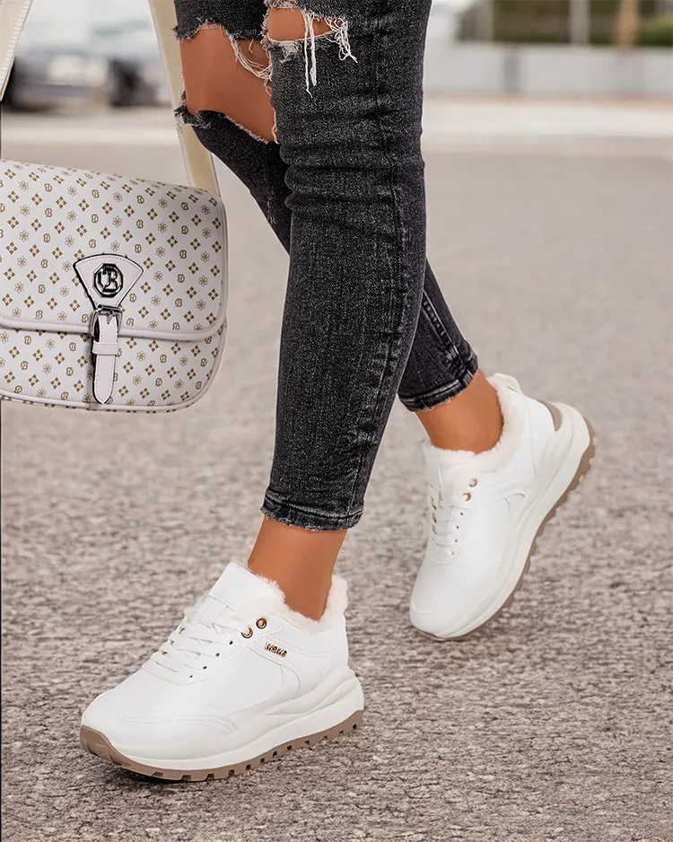 - Women's insulated sneaker-type sports shoes on a thicker sole. Lace-up upper made of eco nubuck combined with eco leather. Soft fur inside. Super addition to your winter casual outfits!