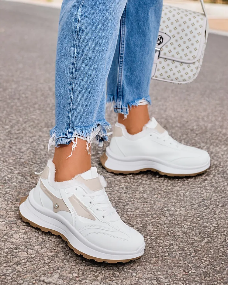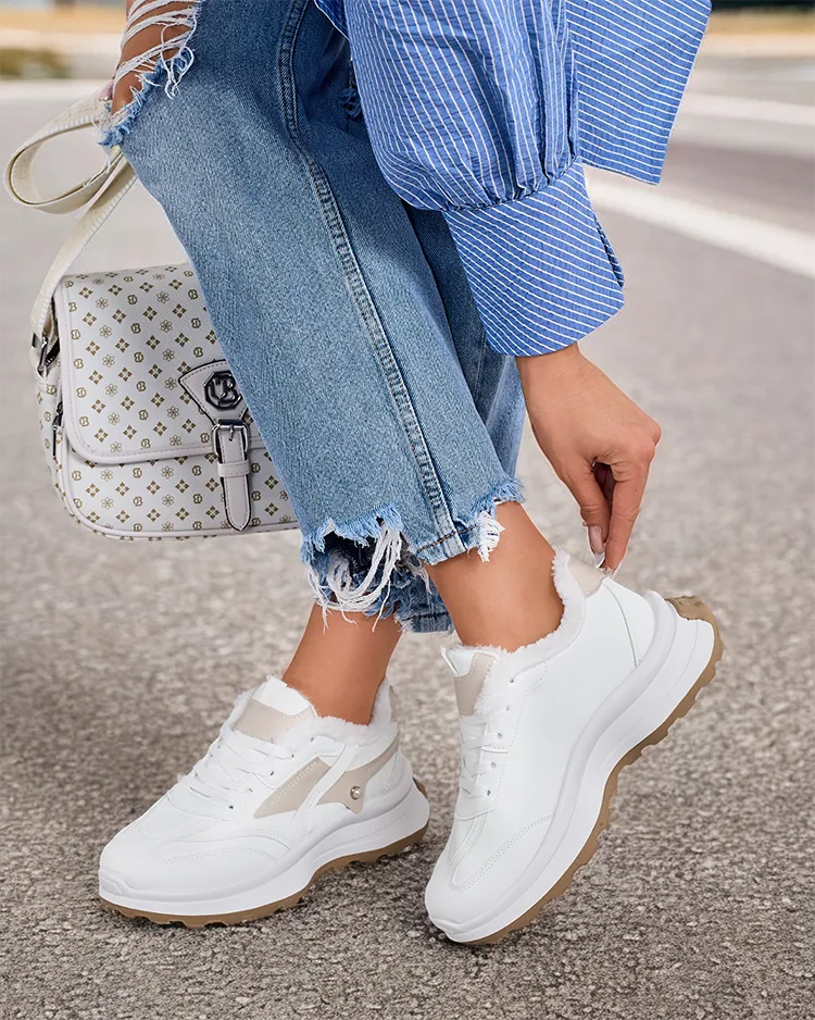 - Women's insulated sneaker sports shoes on a thicker sole. Lace-up upper made of suede ecological leather with eco leather elements. Soft fur inside. Super addition to your winter casual outfits!