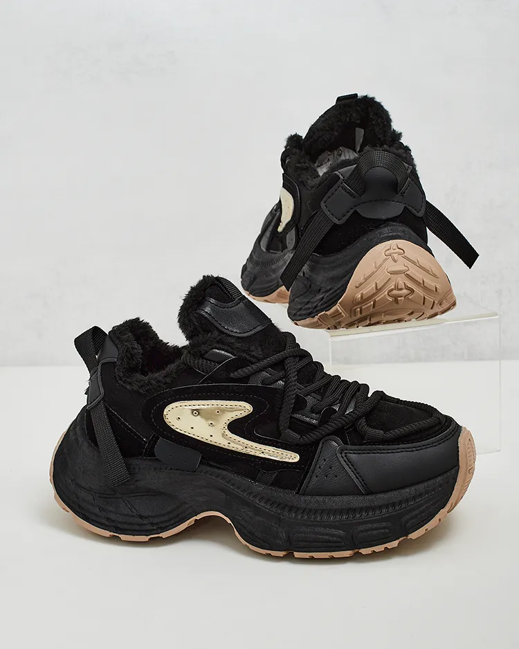 - Women's insulated sneaker sports shoes on a thicker sole. Lace-up upper made of suede ecological leather with eco leather elements. Soft fur inside. Super addition to your winter casual outfits!