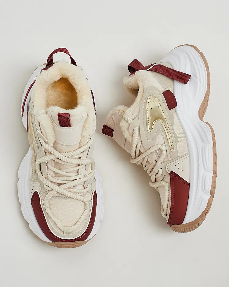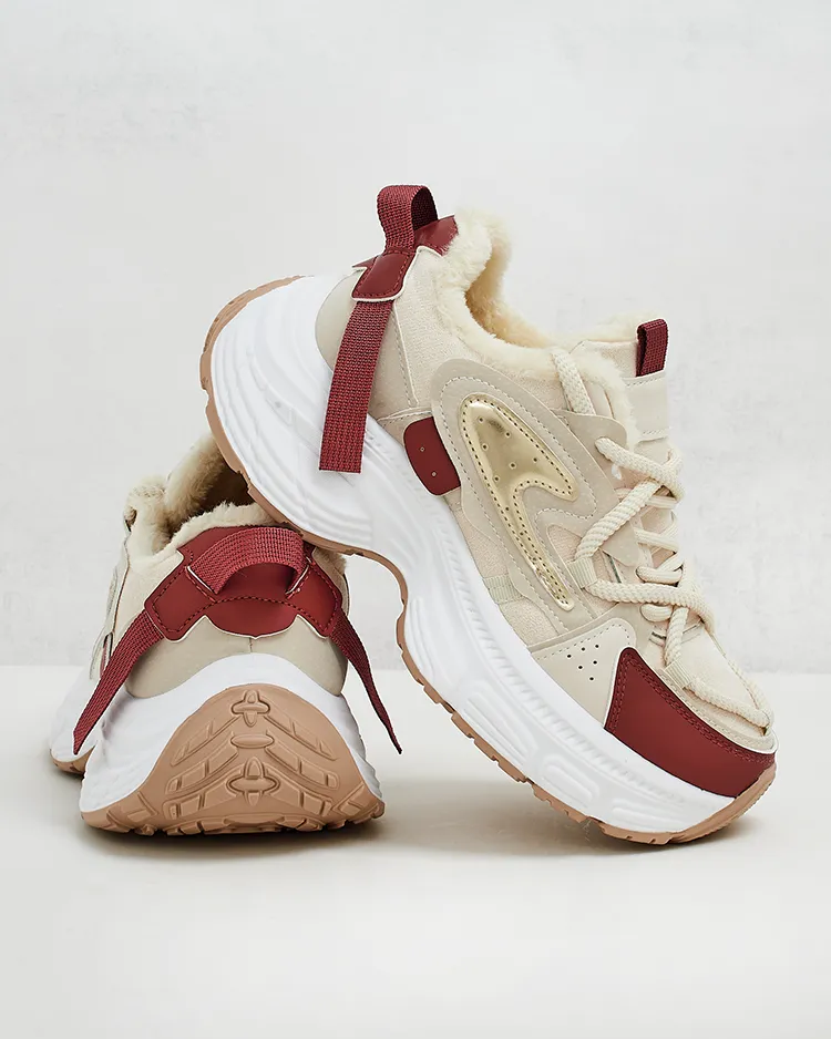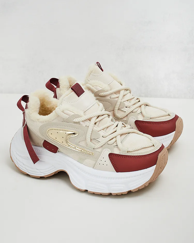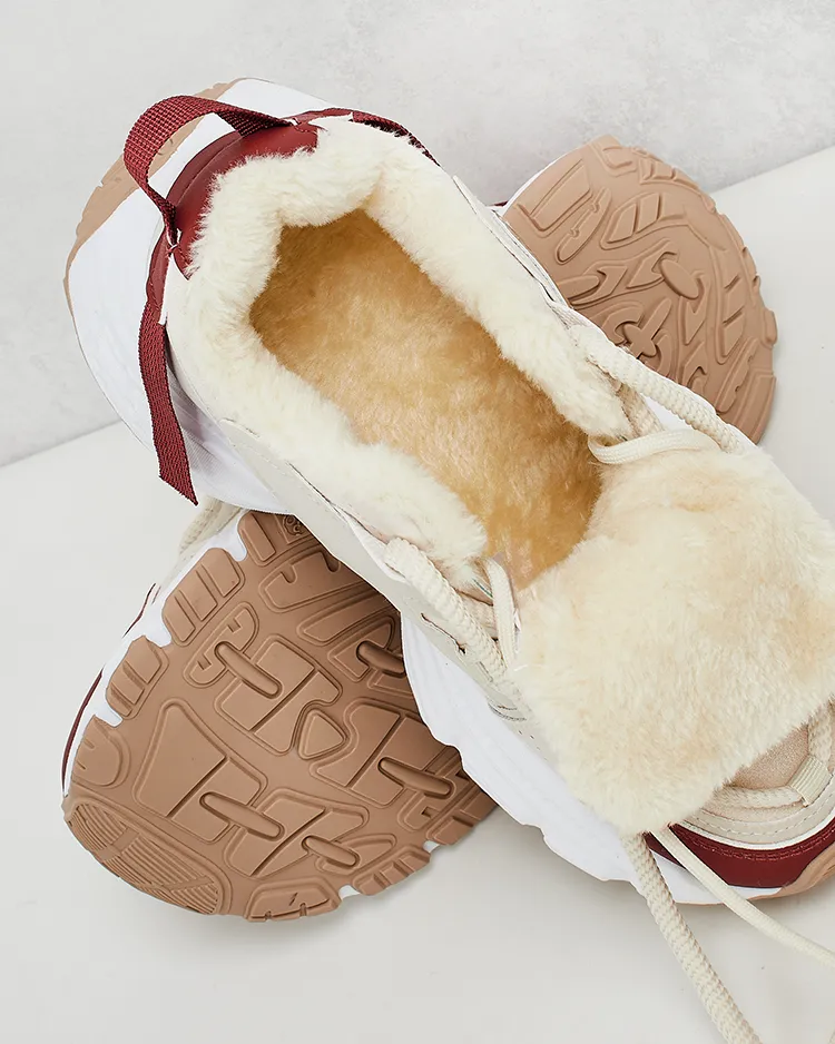 - Women's insulated sneaker sports shoes on a thicker sole. Lace-up upper made of suede ecological leather with eco leather elements. Soft fur inside. Super addition to your winter casual outfits!