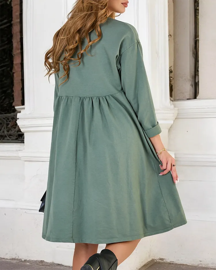 - Casual women's knee-length dress with long sleeves and round neckline. Model with decorative printe. Must have of this season! NOTE: Measurement accuracy (+/-) 1 cm. Dimensions measured flat.