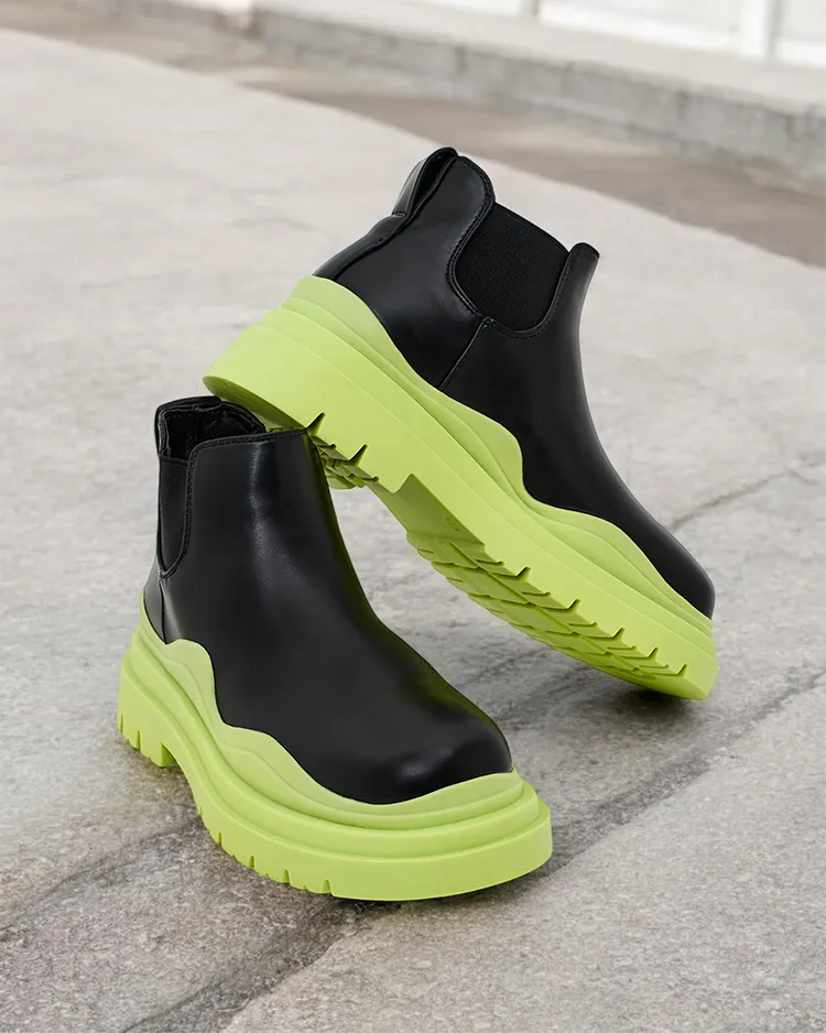 - Sensational women's boots on a flat sole, are made of eco leather. Interior with soft fur guarantees comfort and warmth even on colder days. Elastic inserts on the sides ensure a perfect fit!