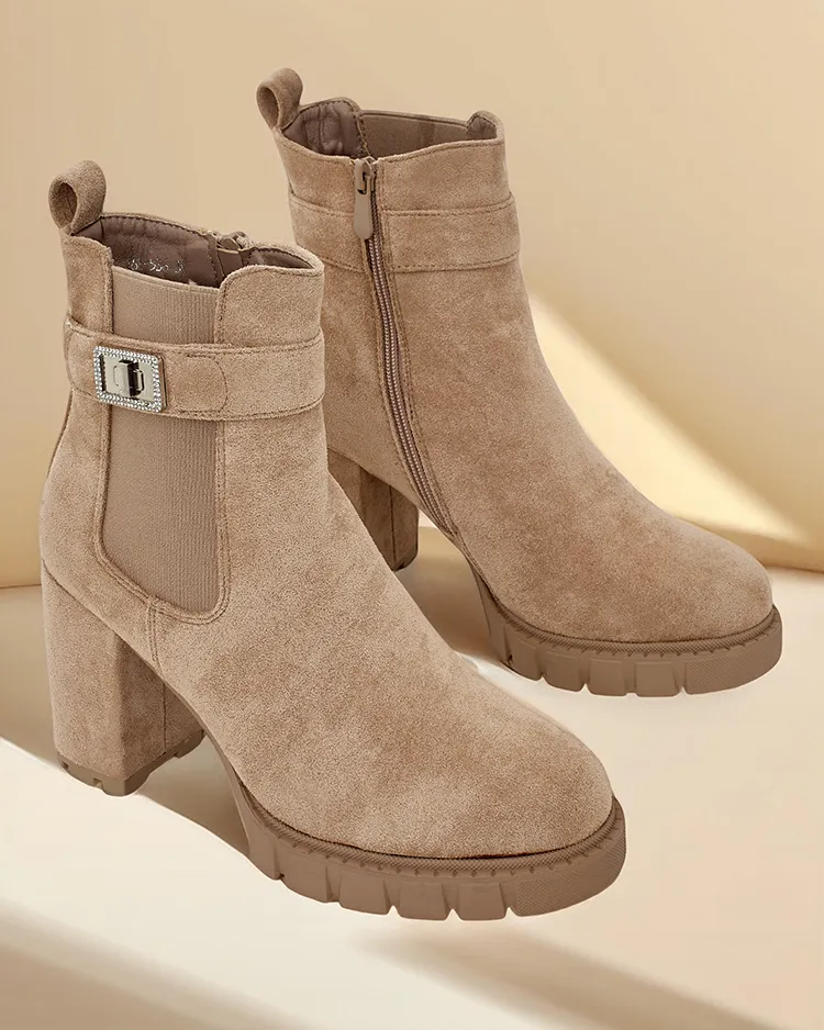 - Ankle boots on a heel - style and comfort in one. Model fastened with a zipper with a round toe. Shoes made of suede eco leather. The inside is lined with faux fur. Perfect for autumn outfits!