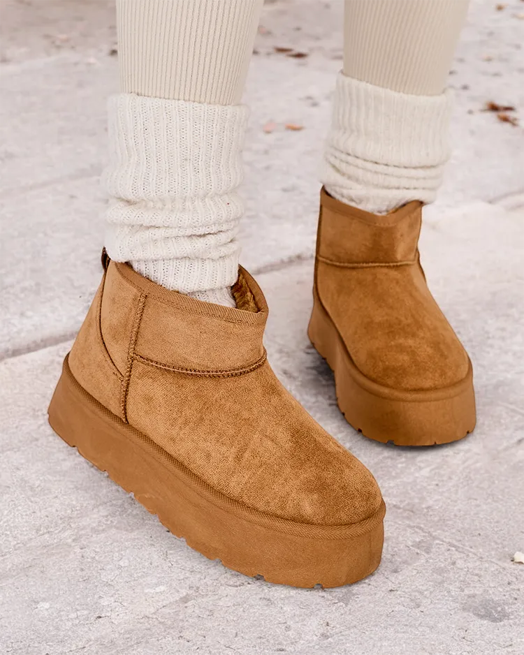 - Great women's winter snow boots on a platform. The upper is made of suede synthetic leather, the inside is lined with fur. Perfect base for winter!