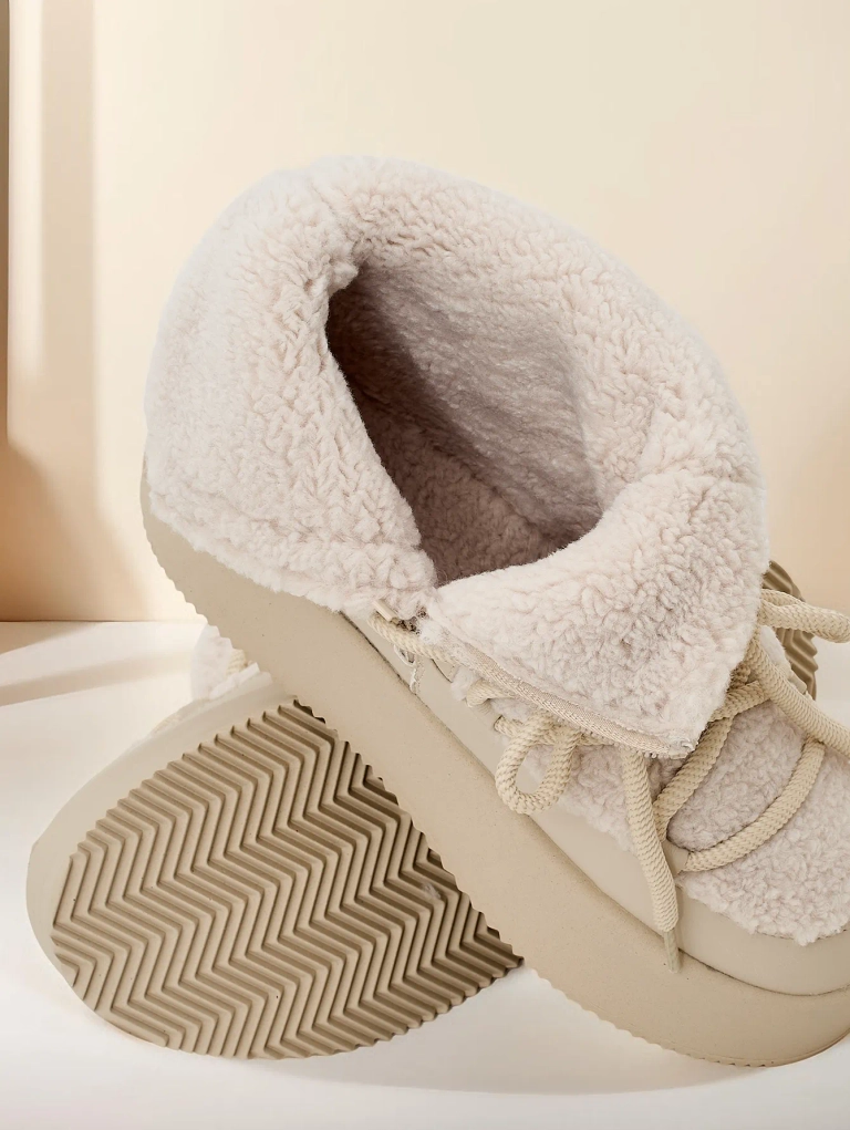 - Women's snow boots with a shaft made of a combination of eco leather and pleasant fabric. Inside, there is a nice fur lining, the shoes have a zipper and a laced shaft. Perfect for winter!