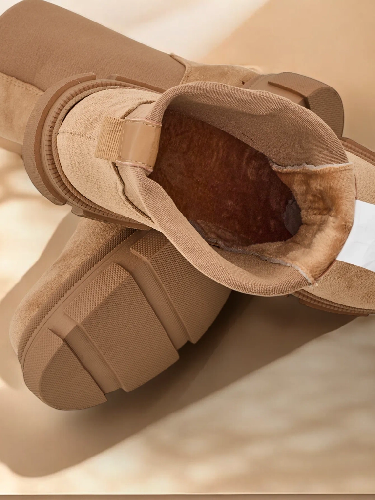 - Fantastic women's boots with a low heel, made of suede eco leather. The interior with gentle insulation guarantees comfort and warmth even on cooler days. Elastic inserts on the sides ensure a perfect fit!