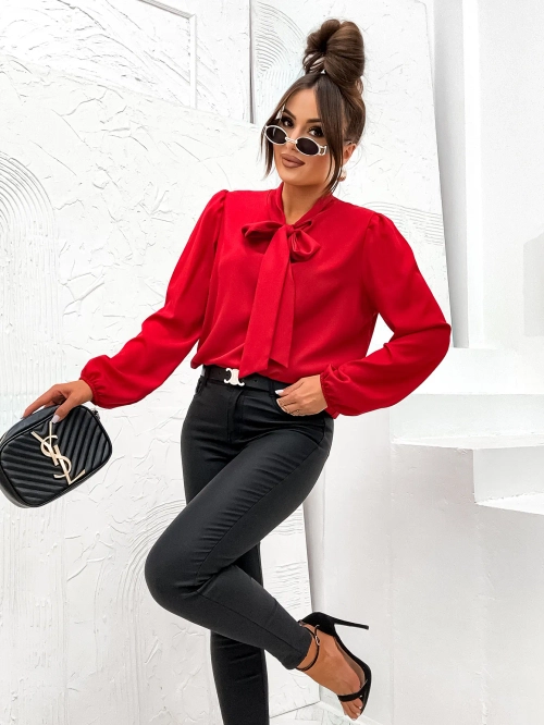- Elegant blouse with a subtly tied bow at the neckline emphasizes female delicacy. Soft material envelops the silhouette, and the bow adds a refined accent. Perfect for evening outings and special occasions!