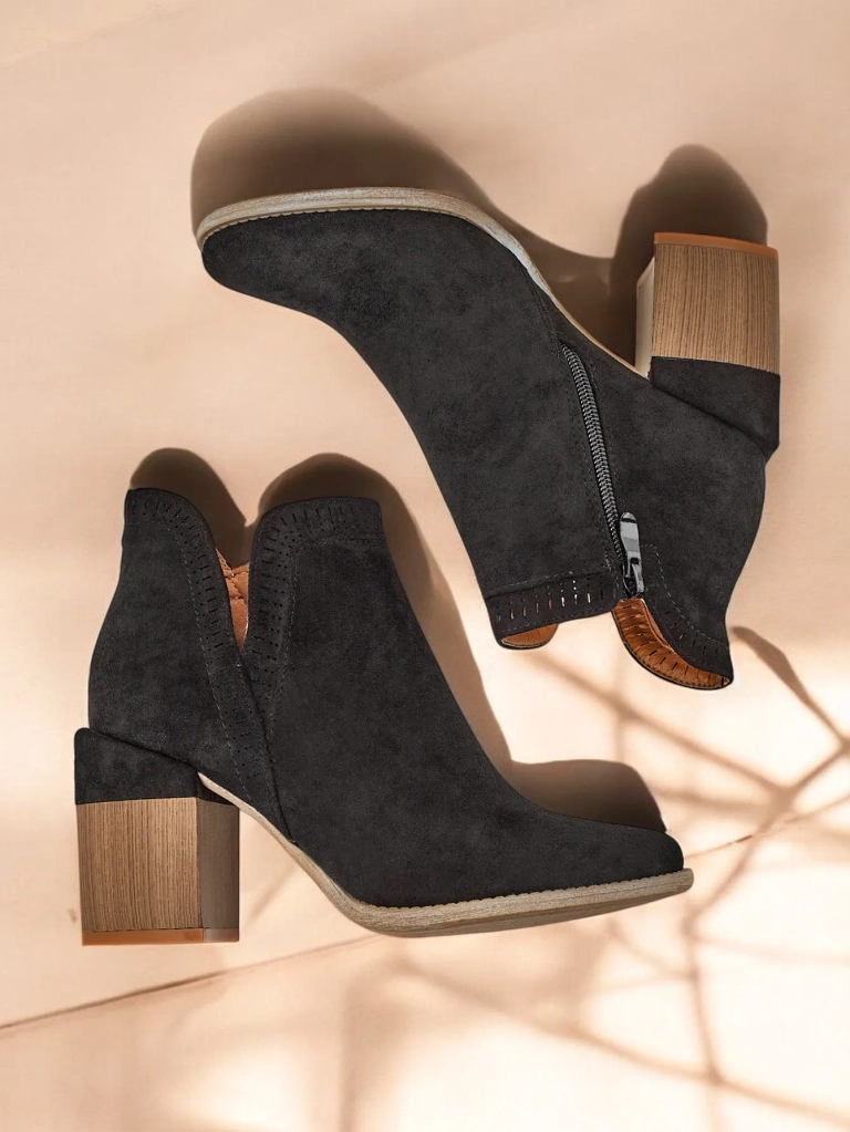 - Women's ankle boots are the perfect solution for cooler days. The eco-suede upper is fastened with a zipper, and inside there is an eco-leather insole. A model on a post, with a round toe. A great addition to your casual outfits!