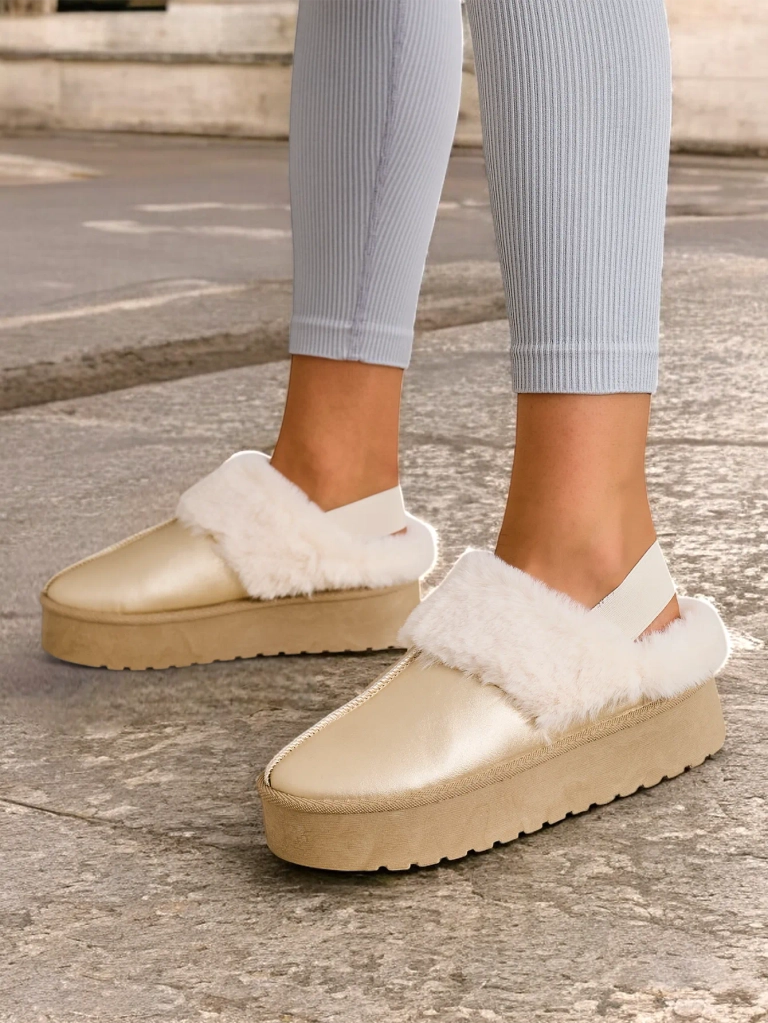 - Great women's winter snow boots on a platform without a heel. The upper is made of eco-leather, the inside is lined with fur. Perfect base for winter!
