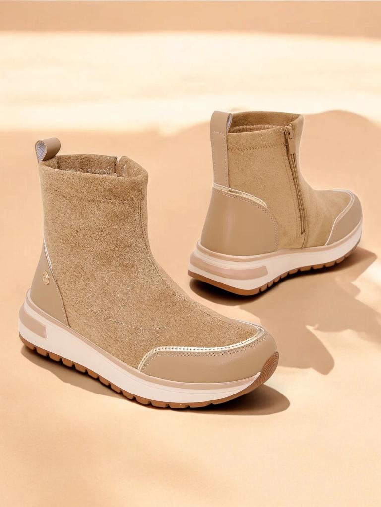 - Women's platform ankle boots, made of suede eco leather. Boots fastened with a zipper, lined with comfortable fur inside. Perfect for autumn!