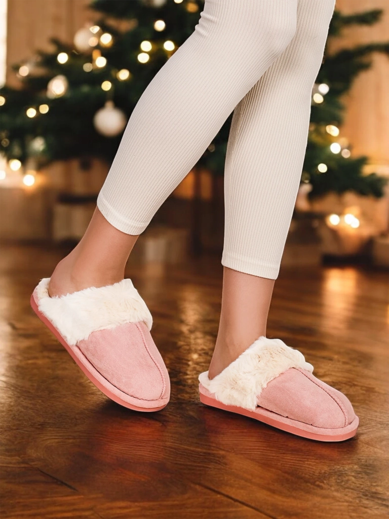 - Charming women's slippers made of suede eco leather. Women's footwear has a soft and warm insole. They will be perfect for winter moments spent at home.