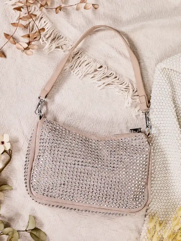 - Elegant small women's bag embellished with studs. Model with a zipper closure, it has 1 compartment and 2 pockets. The bag has two detachable straps and a decorative wallet. Ideal for official outings!