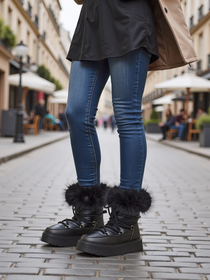 • Women's snow boots with a shaft made of a combination of tarpaulin-like fabric and eco-leather. Inside there is pleasant fur, the shoes are slip-on and laced. Perfect for winter!