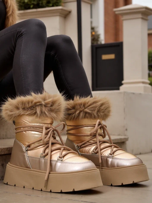 - Women's snow boots with an upper made of a combination of oilcloth-like fabric and eco leather. Inside, there is a pleasant lining, the shoes are slip-on and laced. Perfect for winter!