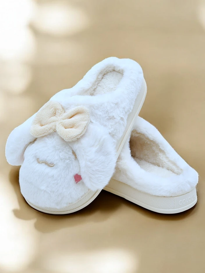- Amazing women's slippers on a flat sole, adorned with a bow. The model is made of materials that imitate fur. A great option for home outfits!