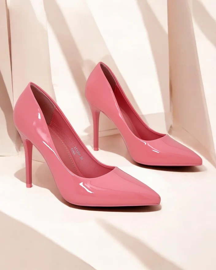 - Elegant women's stiletto heels. The model is made of patent eco leather and features an eco leather insole. Pointed toe. Perfect for evening outings!