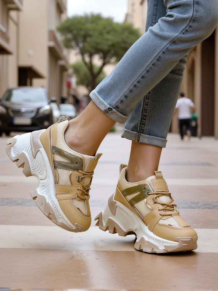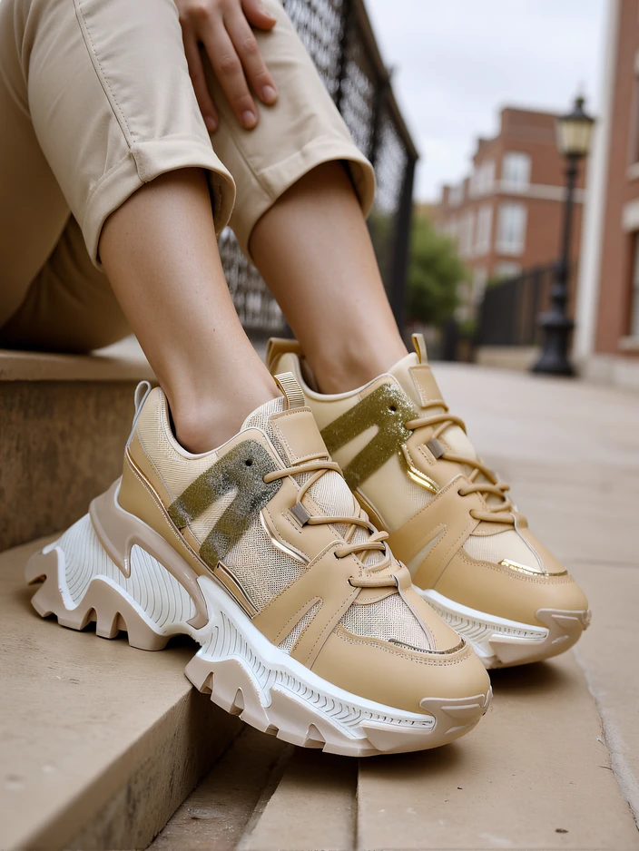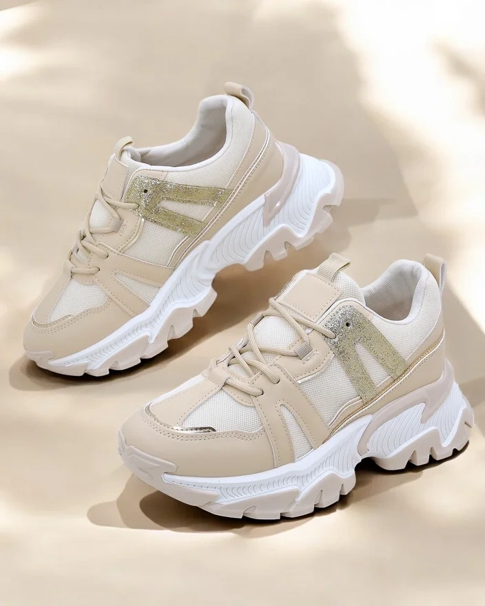 - Women's platform sneakers. The footwear is made of eco-leather with glitter inserts and a fabric insole. A great addition to your casual everyday outfits!