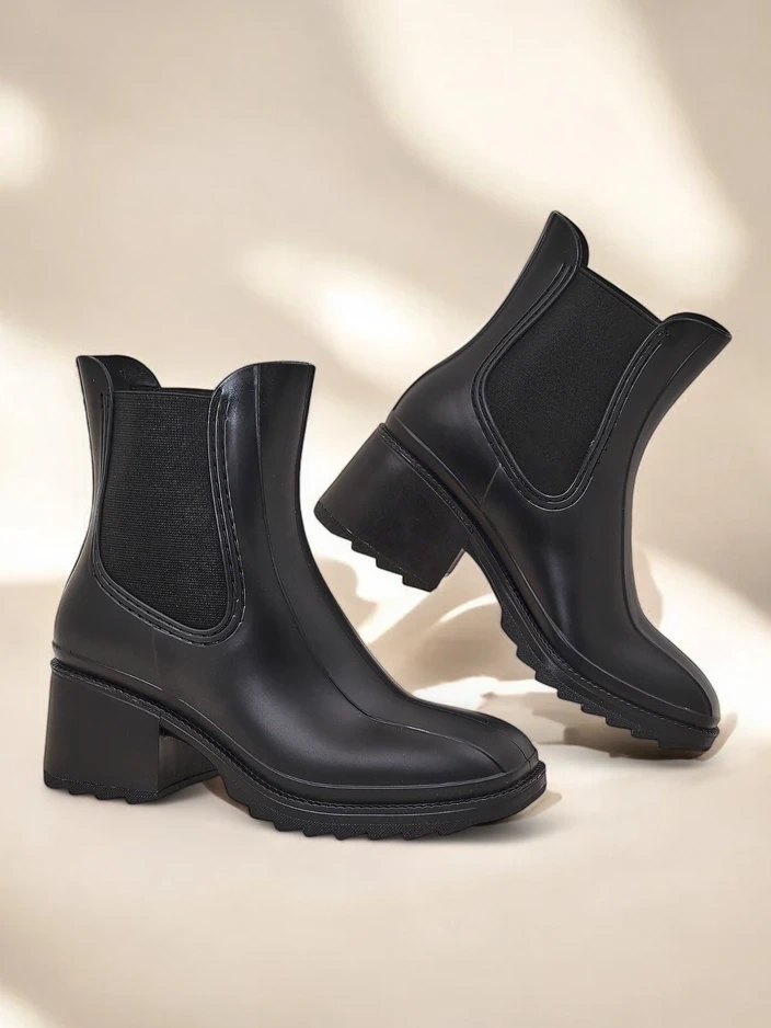 - Classic, slip-on women's ankle boots with a flat heel, made from rubber material. Inside has a fabric insole. Elastic inserts on the sides. Perfect for rainy autumn days!