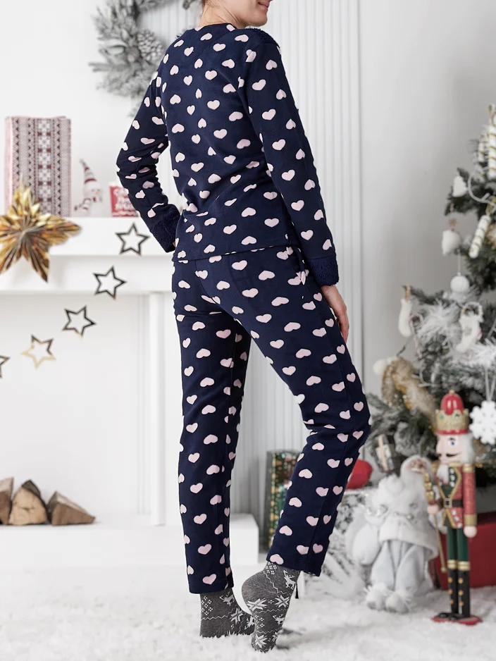 - Women's 2-piece pajamas with long sleeves and long legs, made of a polar-like material. The model is decorated with a print. Perfect for cozy evenings at home! NOTE: Measurement accuracy (+/-) 1 cm.