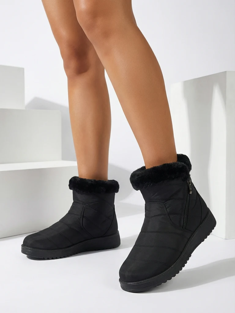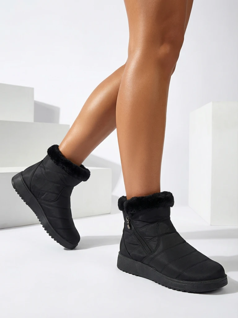 - Warm and stylish ankle boots with fur, perfect for winter days.