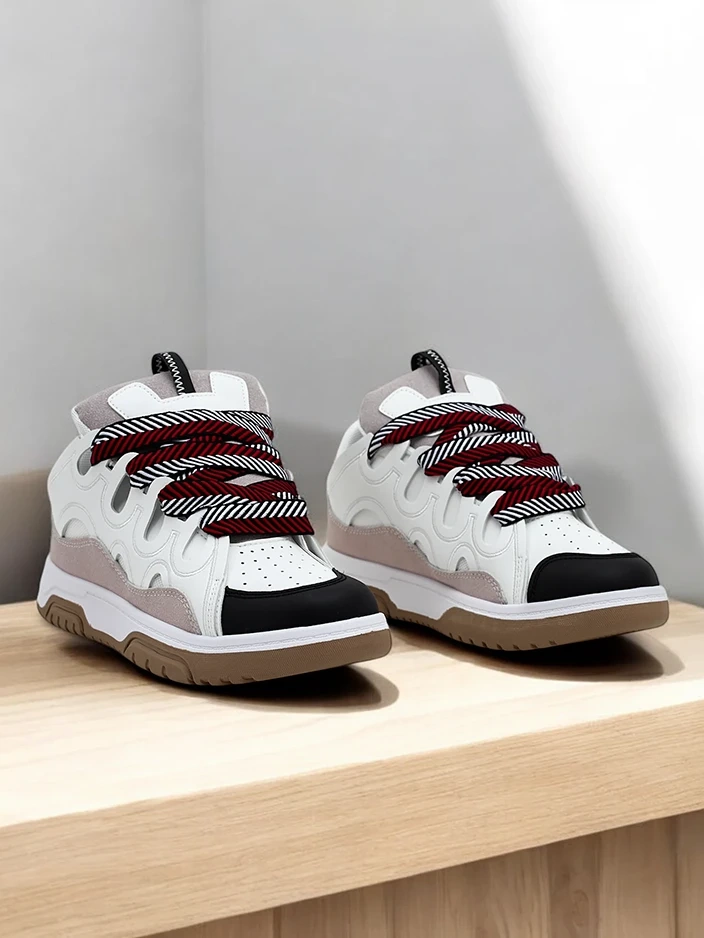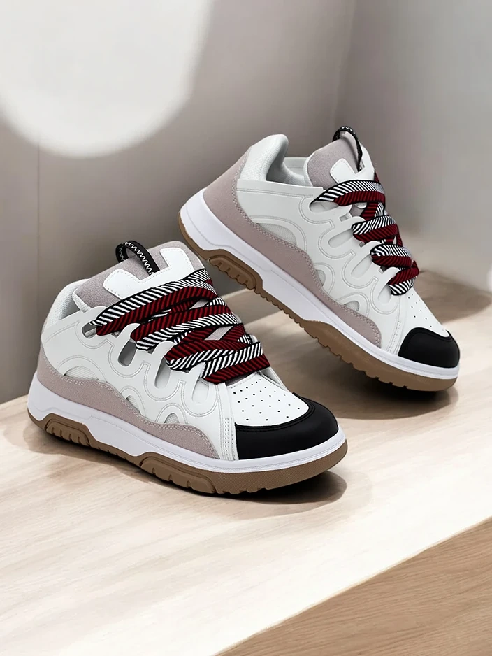 - Fashionable women's sporty sneakers with a thicker sole, made of eco-friendly leather and eco nubuck. Inside, there is a fabric insole, and the model is laced. They will be a great addition to everyday outfits.
