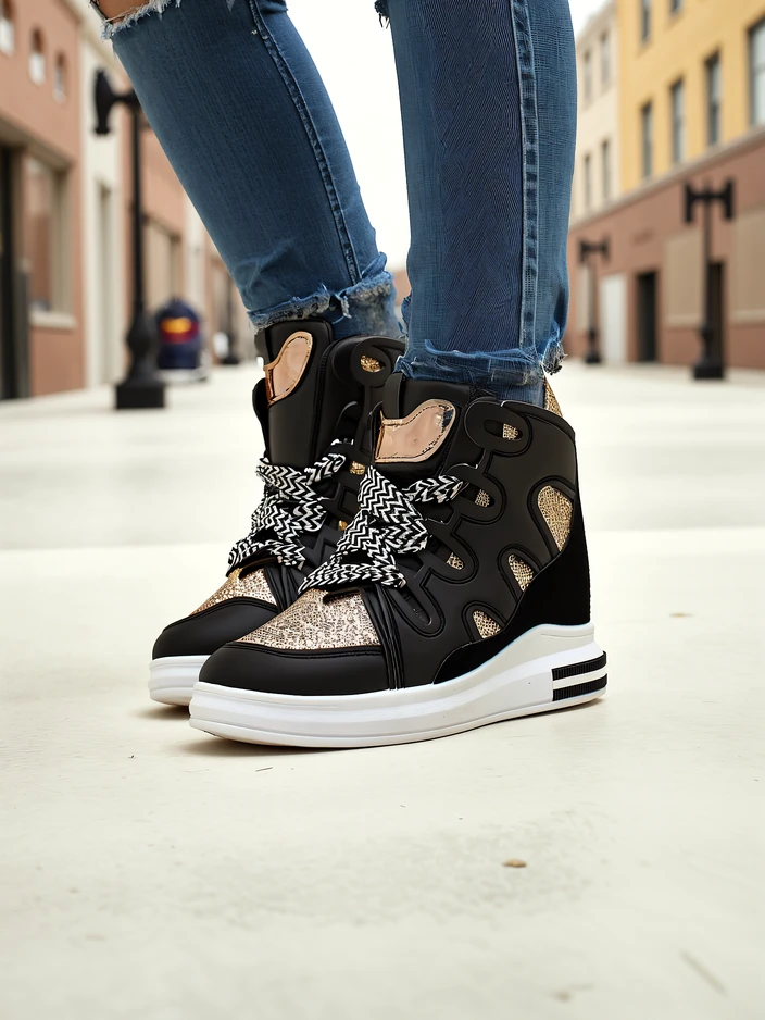 Royalfashion High sports shoes for women with a hidden wedge Oblaffi