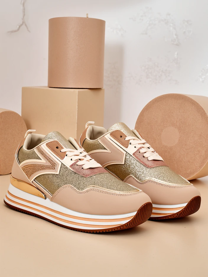 - Women's sports shoes in the sneaker style with a thicker sole. Made of eco-leather and glitter material with a fabric insole. A great addition to your everyday casual outfits!