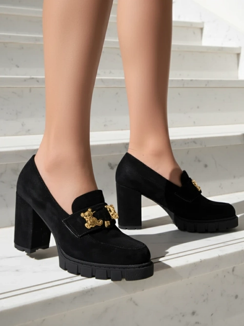 Stunning Black Suede Block Heel Shoes Elegant and Fashionable