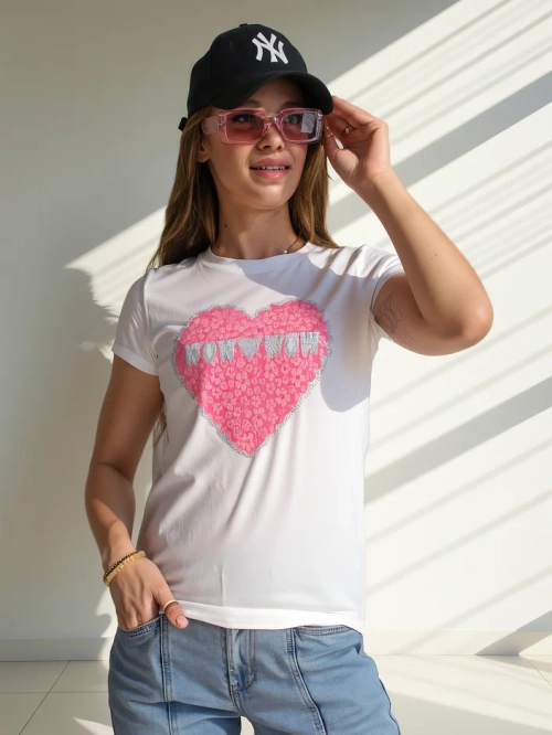 - Original women's blouse with a round neckline, made from soft and pleasant-to-touch fabric. The whole piece is adorned with striking sequins, and the short sleeve adds lightness. A perfect choice for creating fashionable and stylish outfits!