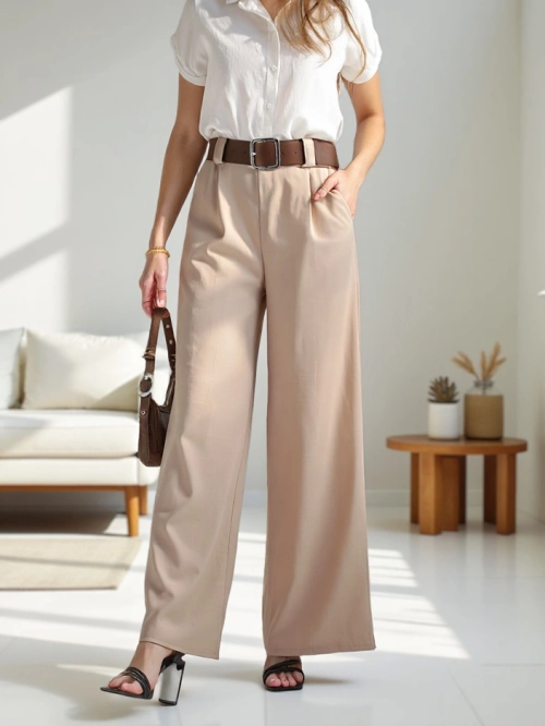- Amazing wide trousers made of lightweight fabric, the model features 2 pockets and an elastic waistband. Additionally, a belt is included. A must-have in your wardrobe! NOTE: Measurement accuracy (+/-) 1 cm.