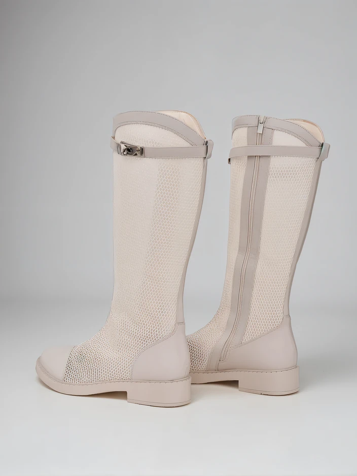 • Unique women's ankle boots made of mesh-like fabric and eco-leather with a perforated finish and eco-leather insole. Model fastened with a zipper. Perfect for autumn outfits!