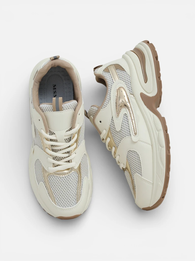 - Women's sports shoes made of eco-friendly leather and mesh. Model with a thicker sole. Laced upper. They will be a great fit for everyday outfits!