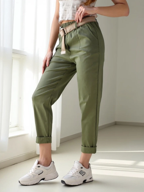 - Phenomenal straight pants made of lightweight fabric, the model features an elastic waistband and a belt. Additionally, 2 pockets. A hit of this season! NOTE: Measurement accuracy (+/-) 1 cm.
