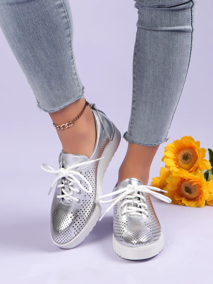 • Women's perforated loafers with a thicker sole. The slip-on upper is made of eco leather, the insole is made of eco leather. An ideal basis for everyday outfits!