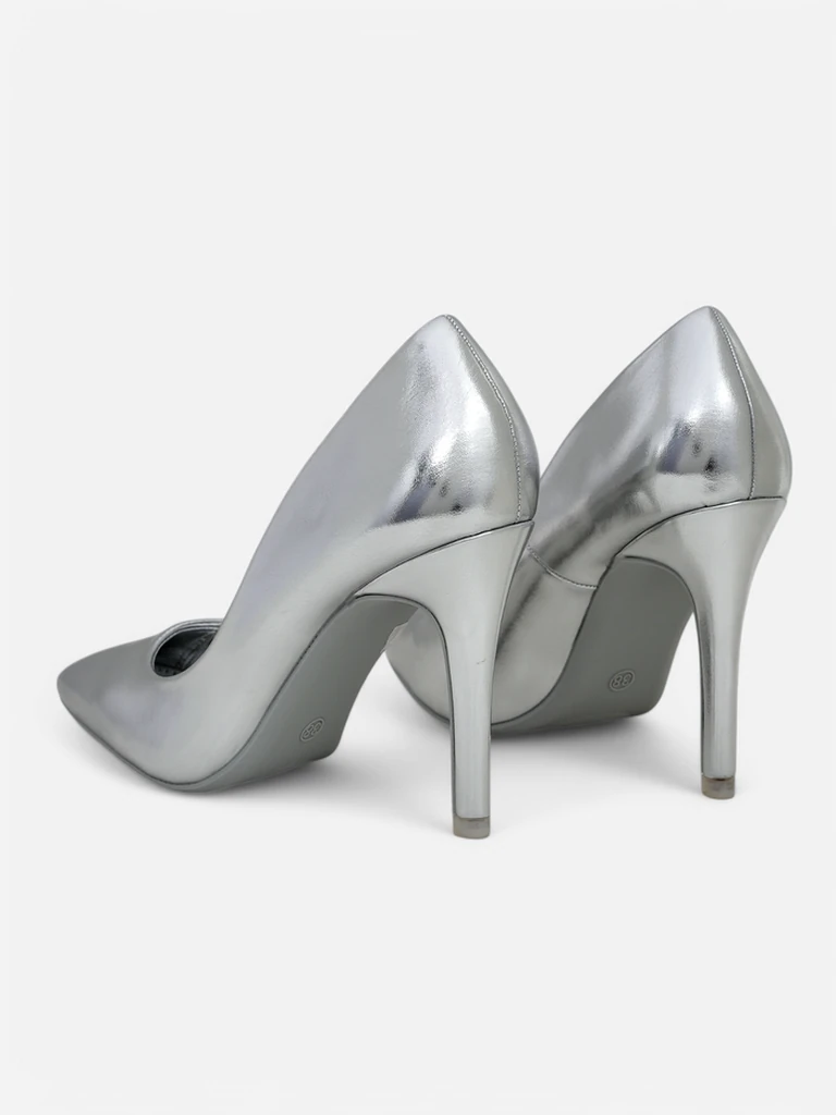 These elegant women's shoes in silver are the perfect choice for women who value style and comfort. Made of high-quality ecological leather, they are not only visually attractive but also environmentally friendly. Thanks to the production technology used, the footwear provides excellent ventilation for the feet, which translates into comfortable wearing for long hours. The low weight of the shoes and the perfectly contoured insole also have a significant impact on the comfort of everyday use. A distinguishing feature of these shoes is their unique design, with a characteristic 10.5 cm stiletto heel that adds elegance to any styling. Thanks to the universal silver color, you can easily match these shoes to a variety of clothes. Keep in mind that silver stilettos go perfectly with: 1. A classic little black dress - adding a sensual character to any evening styling. 2. Elegant style trousers - combined with a white shirt, they will create the perfect styling for the office. 3. Dresses in pastel colors for spring - they will add freshness and lightness To enjoy these shoes for a long time, it is worth regularly cleaning and impregnating them with appropriate ecological leather products, which will help maintain their great appearance. Current fashion trends emphasize the importance of lingerie footwear, which is at the forefront of every modern woman's wardrobe. Don't delay! Enrich your wardrobe with this unique model, which will surely catch the eye and delight everyone.