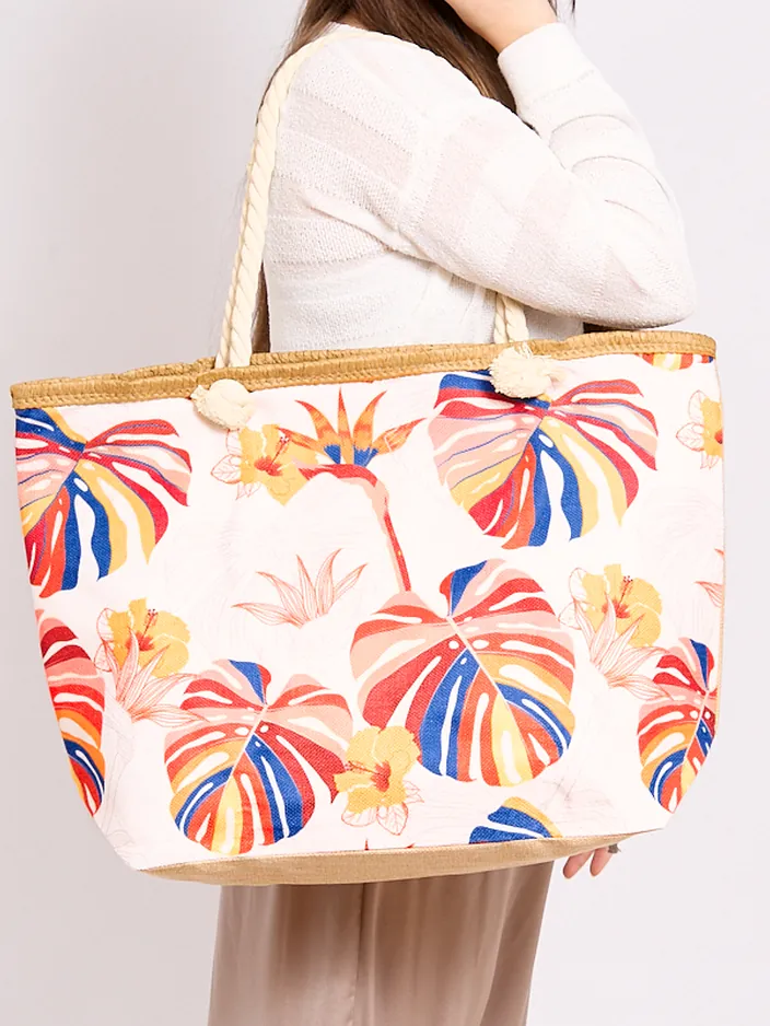 • Stylish fabric bag finished with a print. The bag has longer handles, closes with a zipper, and has 1 pocket inside. It is perfect for the beach!
