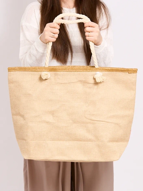 - Stylish fabric bag finished with a print. The bag has longer handles, zip closure, and includes 1 pocket inside. It will be great for the beach!