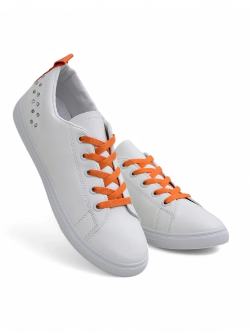 - Original women's sneakers with a flat sole - the perfect combination of style and comfort. The shoes are made of eco-leather. Laced model with a fabric insole. Perfect for active individuals!