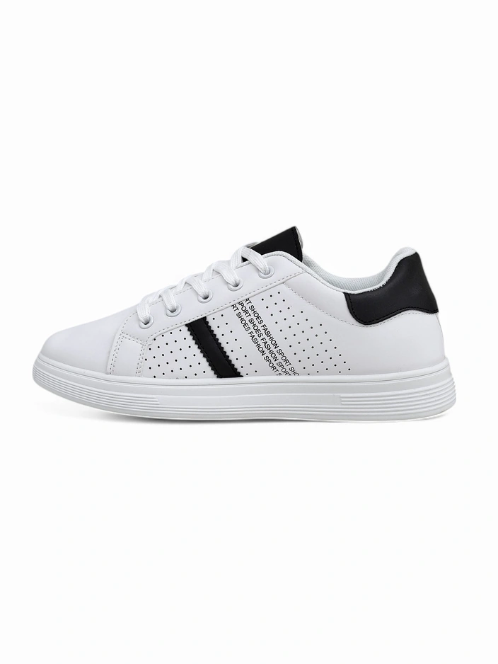 - Openwork women's sports sneakers made of eco leather and fabric insole. Model on a flat sole. They will fit perfectly to everyday styling!