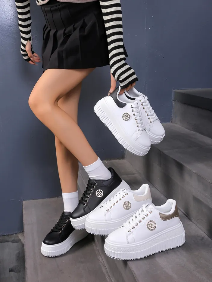 • Elegant platform sneakers with a subtle accent, perfect for everyday outfits.